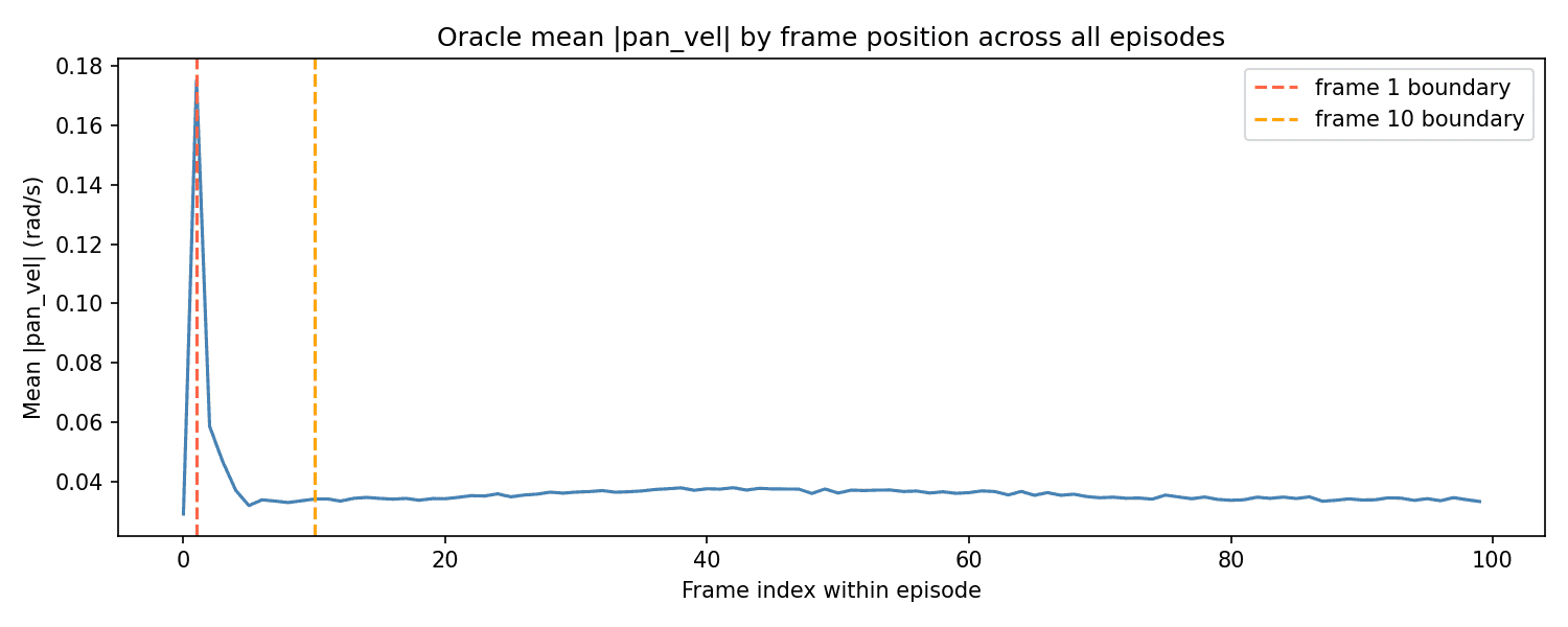 Average oracle pan velocity per frame, where 0 is the first frame of the episode.